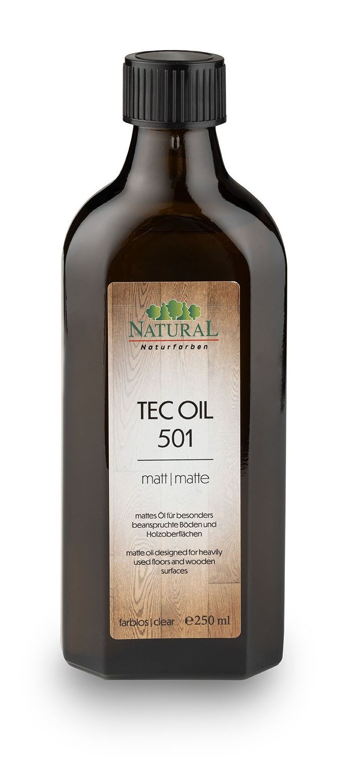Natural TEC OIL 501 matt ist ein mattes, schnelltrocknendes Öl für die Endbehandlung von stark strapazierten Holzoberflächen, wie Fußböden, Küchen-, Arbeits- u. Tischplatten oder saugfähige Stein- und Klinkeroberflächen, sowie Kork.